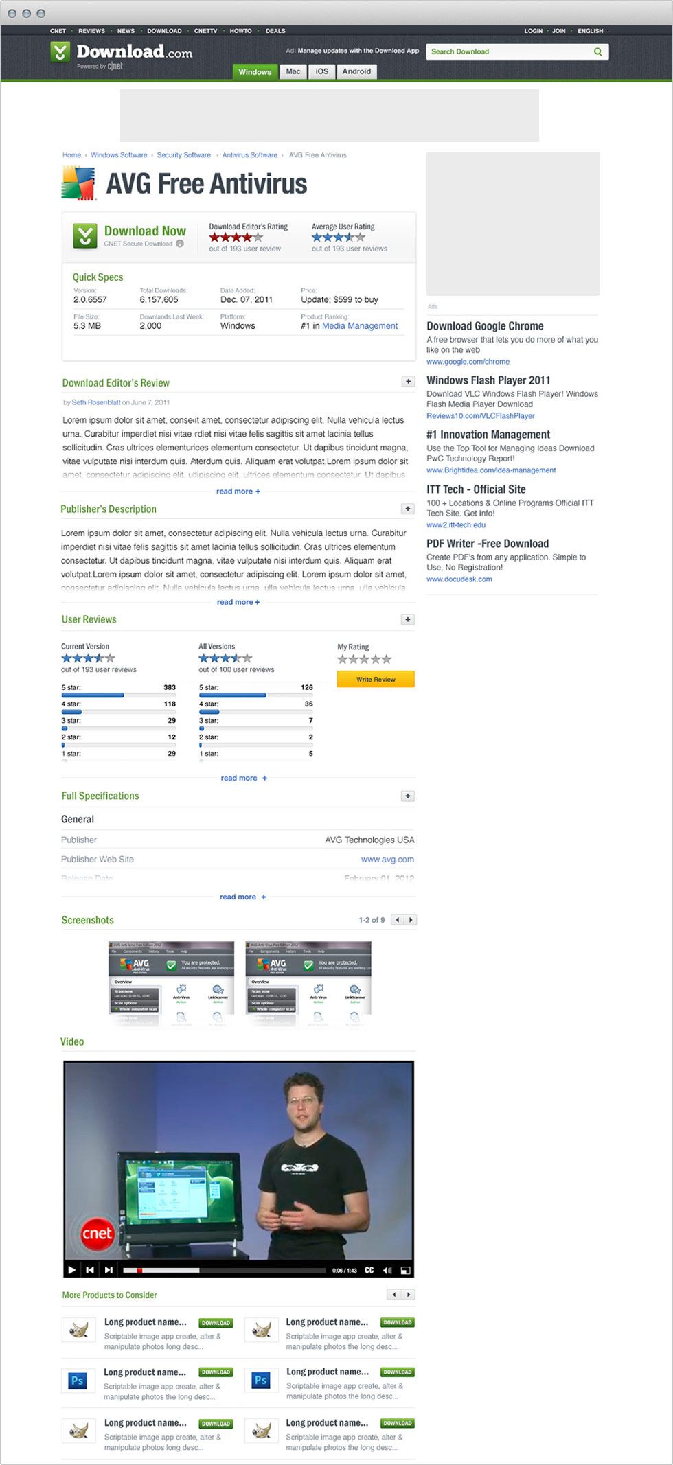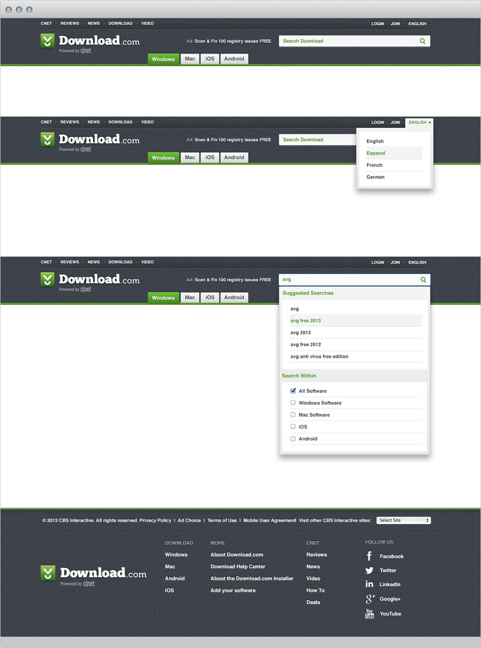 Download.com is a website to discover and download software. In 2011, I was given the opportunity to become the primary design resource for the Download.com. My goal is to optimize all page types, give new aesthetics, while maintaining a clear user experience.