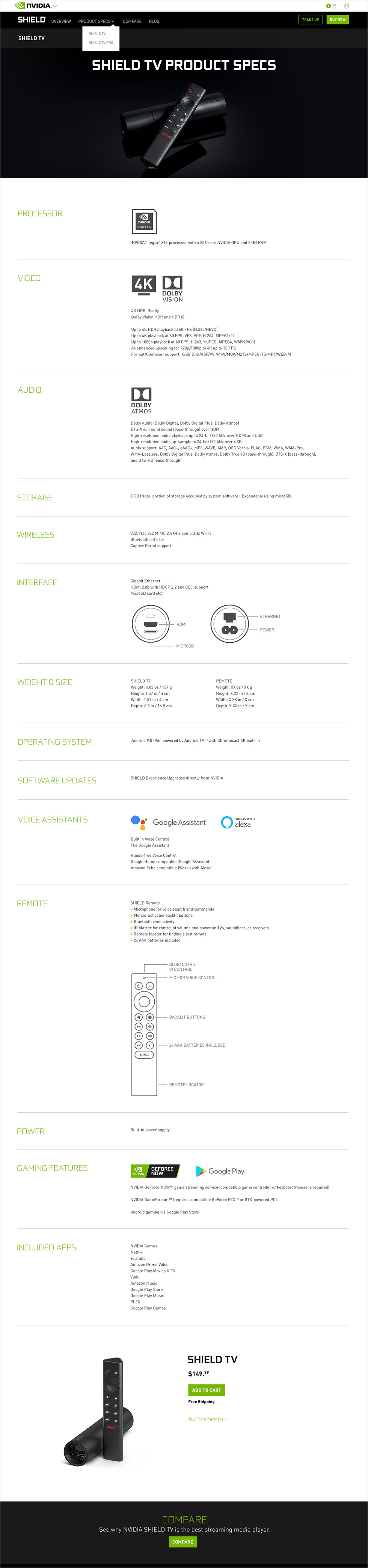 As lead web designer for NVIDIA SHIELD, I work alongside the creative director, visual designer, and marketing team for multiple product launches. My responsibilities include developing competitive analysis, information architecture, wireframes, and creating multiple web layouts to accomplish a clear message for products and features. My main objective is to improve the user experience and increase sales.